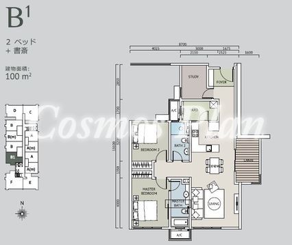 | 部屋タイプ | 2+1ベッド | 広さ | 約100m² (1,076sqf) |